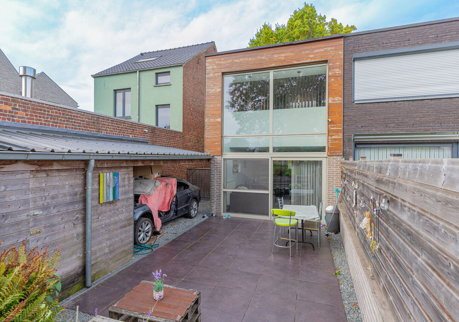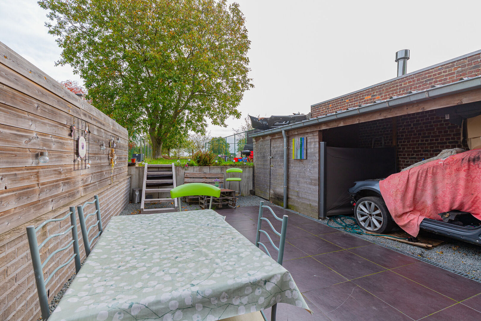 Deze woning beschikt tevens over een carport met naastgelegen berging die plaats biedt aan 1 wagen.