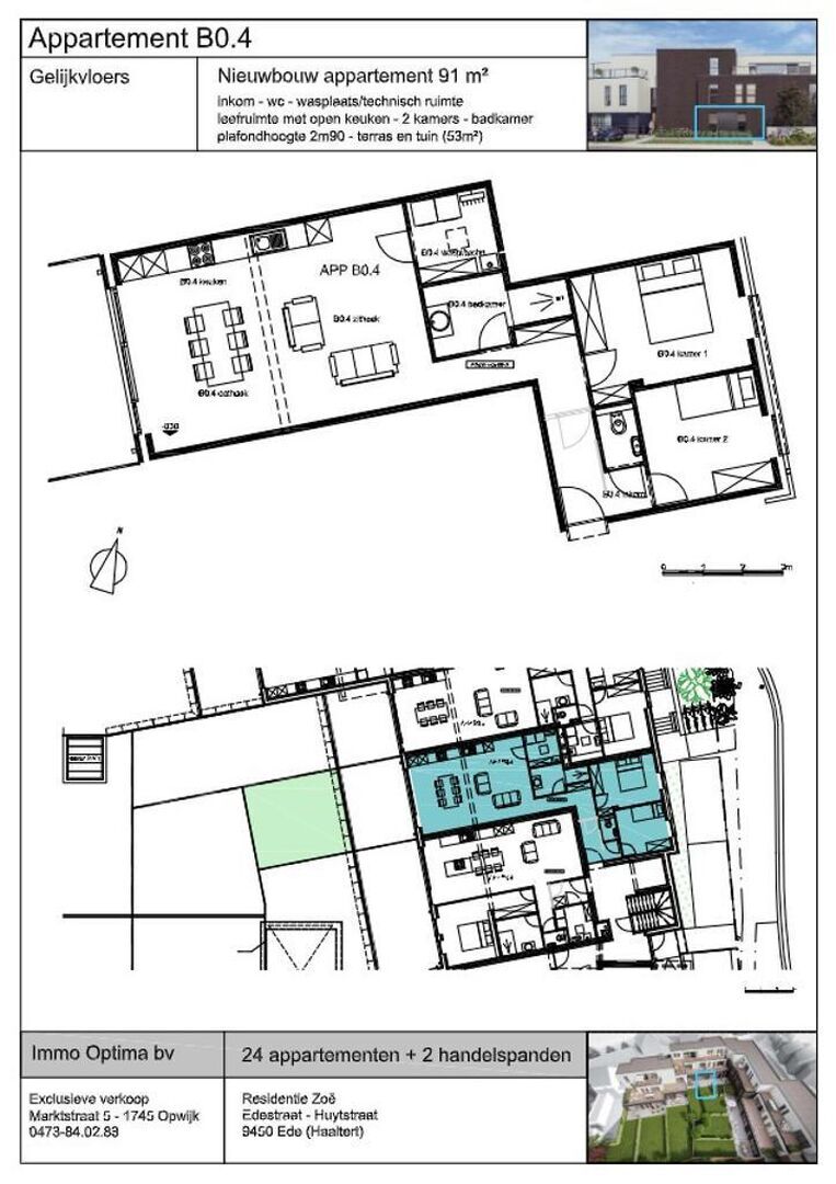 Dit stijlvolle gelijkvloers appartement van 91m² is gelegen op de gelijkvloerse verdieping van blok B. We komen binnen in dit appartement via de inkom en gaan zo naar de aparte toilet, 2 slaapkamers, badkamer, technische ruimte en de leefruimte met open keuken en aansluitend terras van 21m² met aanliggende tuin van 30m². Mogelijkheid tot aankoop van ondergrondse berging, autostaanplaats of garagebox. Prijs excl. BTW & kosten.